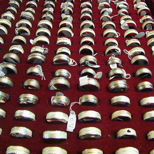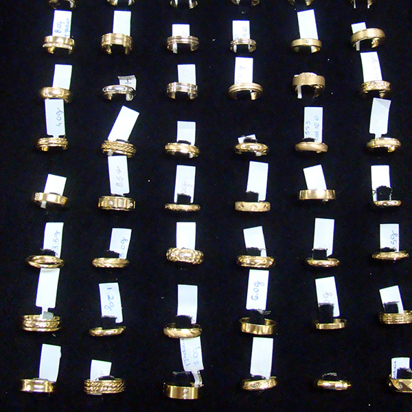 Relógios, Alianças anatômicas, Anéis, Anéis de formatura, brincos, gargantilhas e correntes.